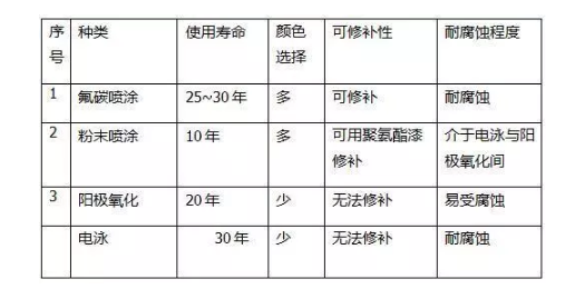 鋁合金型材按照表面處理方式,可分為氟碳噴涂、粉末噴涂、陽極氧化、電泳四種材料。以上四種表面處理方式中,常用的是粉末噴涂、電泳