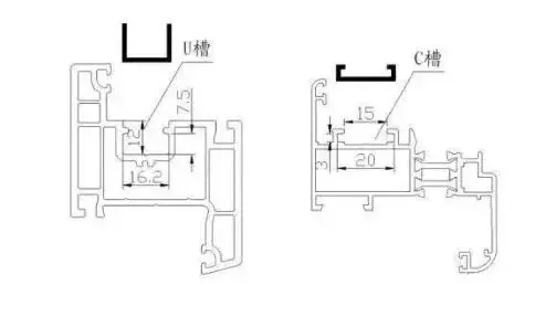 鋁合金門窗里的型材要組成門窗就需要型材的截面設(shè)計(jì)有槽口與五金件連接,而這個(gè)槽口有U型槽和C型槽,歐洲的鋁合金門窗系統(tǒng)中標(biāo)準(zhǔn)槽口只有C槽口1種,U型五金槽口是塑鋼門窗歐洲標(biāo)準(zhǔn)槽口。